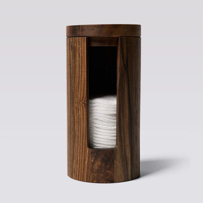Лімітована колекція. Органайзер виготовлений з високоякісної, відповідально отриманої цільної деревини горіха. Цей елегантний аксесуар допоможе організувати ваші ватні диски, забезпечуючи зручний доступ і зберігання.
